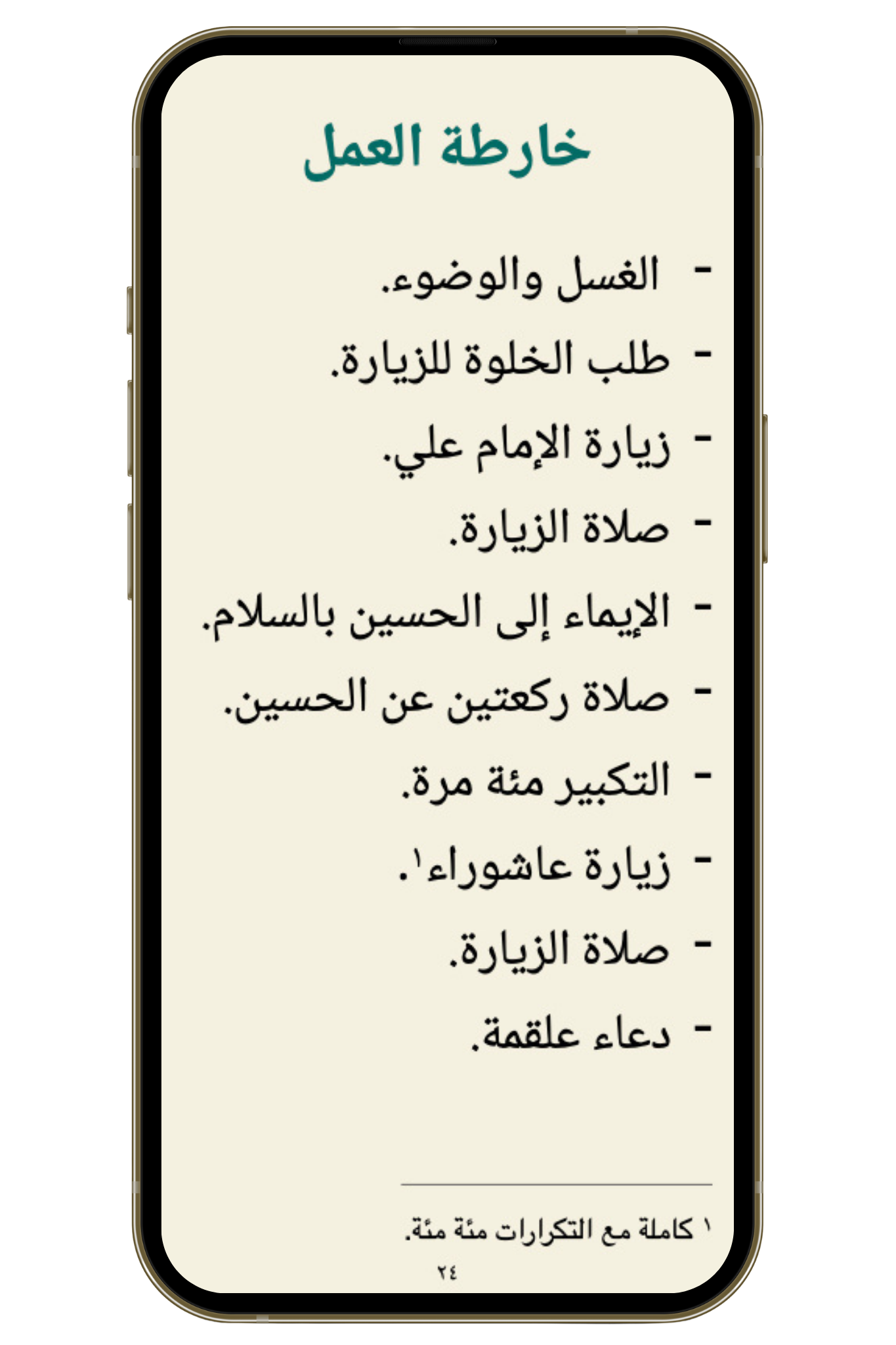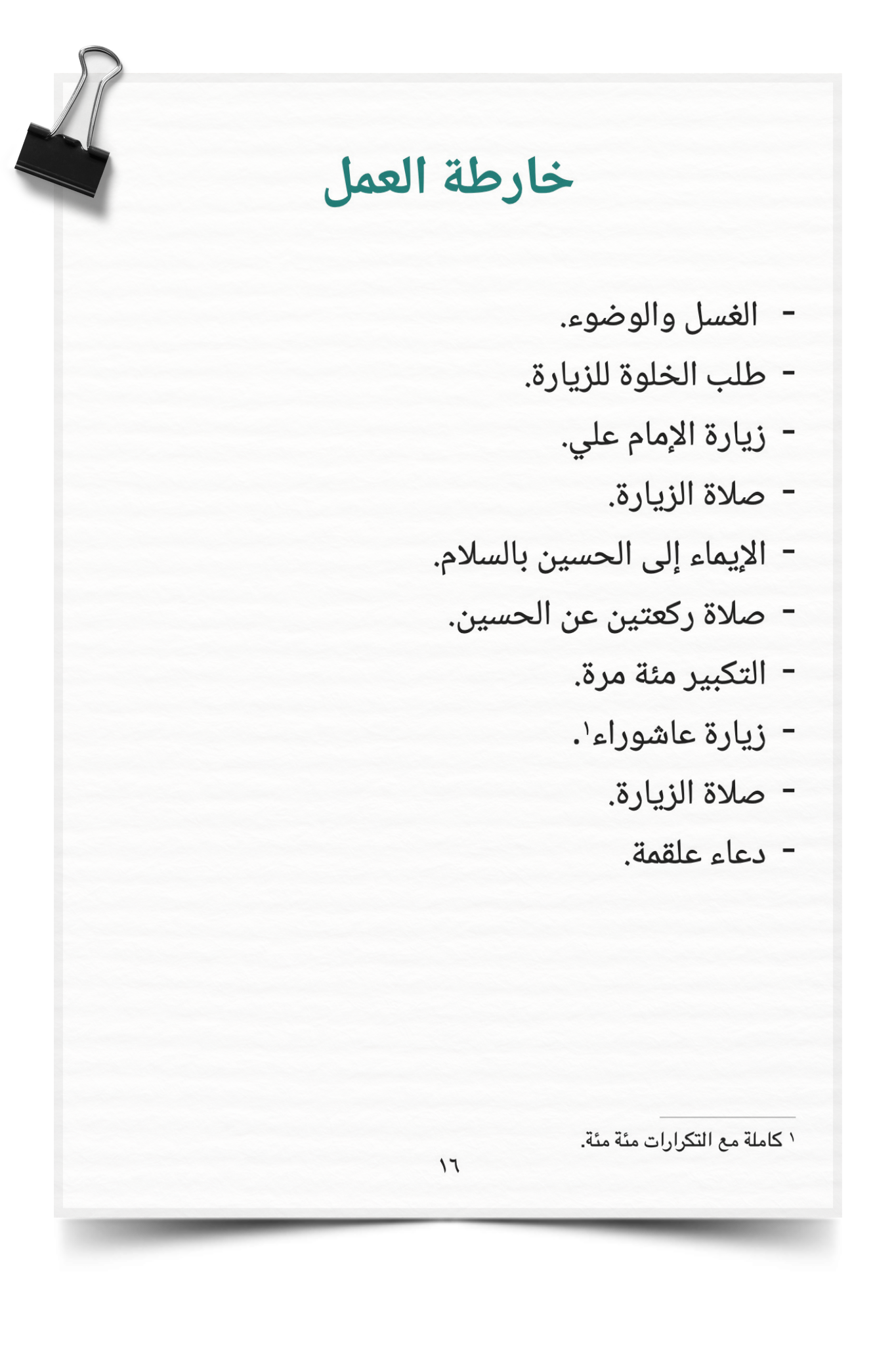 المحتوى: الدليل الكامل لأعمال زيارة عاشوراء.